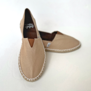 Lolalu – Signature beige espadrilles with right / left soles and elastic tongue for added comfort and fit. The insole is finished with a light breathable cotton that is always soft on your feet. Exclusively designed in Spain for Lolalu.